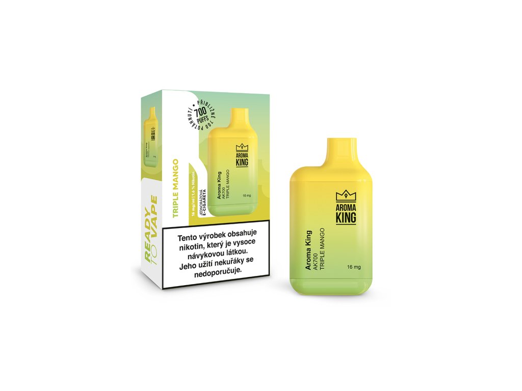 Jednorázová e-cigareta Aroma King Mini 700 Triple Mango je lákavou směsí zralých mang, která vytváří lahodně sladkou a šťavnatou chuť, jež vás s každým soustem přenese do tropického ráje.